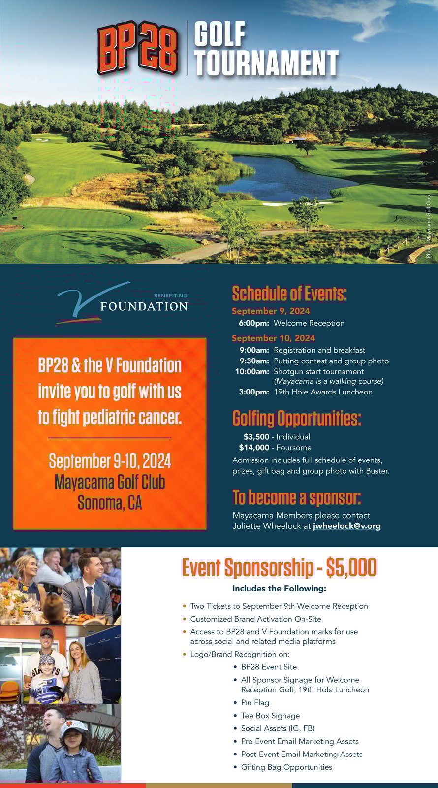 We are excited to announce that on Tuesday, September 10th, Mayacama will be hosting the 2024 Buster Posey BP28 Golf Tournament in partnership with the V Foundation to fight pediatric cancer. Mayacama Members interested in participating in the tournament or being an event sponsor can reach out to Juliette Wheelock at [email protected]. For more information, please visit BP28.org or v.org/events.
