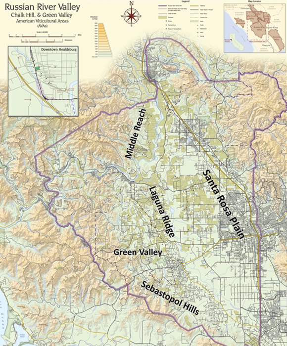 Established as an American Viticultural Area in 1983, the Russian River Valley may be the best-recognized Sonoma County appellation globally. Most known for its quality Pinot Noir and Chardonnay, the key is the appellation’s climate. Cool breezes and fog from the nearby Pacific Ocean blanket the area most mornings and evenings. The fog and wind temper summer’s heat and can reduce temperatures by 35-40 degrees at night, ensuring a long, even growing season. The slow ripening process fully matures the fruit while maintaining healthy levels of acidity.