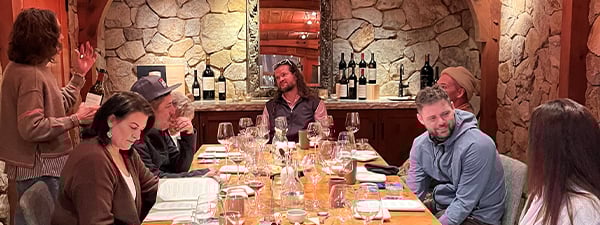 A couple weeks back, the Mayacama team took another class trip, this time up to Dry Creek to visit Lambert Bridge. If there’s a spot for a rainy-day visit, especially in February, Lambert Bridge gets my vote. A beautiful redwood interior and bar with a roaring fire in the stone fireplace? Yes, please!
